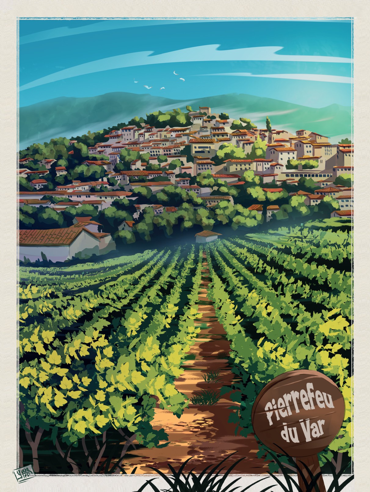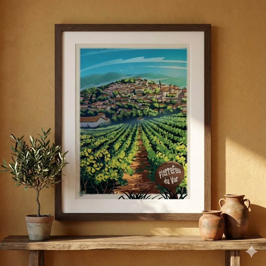 Pierrefeu s’élève fièrement au-dessus des vignes, baigné par une lumière radieuse.